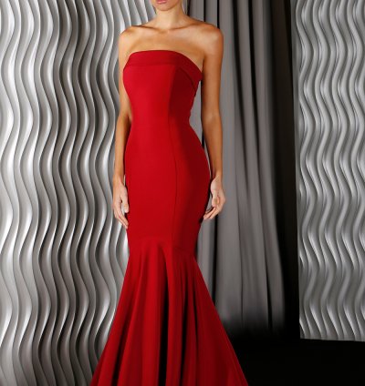 Floor length strapless gown from Jadore. Fit & Flare gown features fitted bodice & full fit & flare skirt. Perfect for your deb ball or simple yet elegant wedding gown.